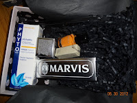 Let's start with the packaging. Woah. That's all I could think for a while. The box is substantially larger than the sample society/ Birchbox boxes. Out of the three, this one has the sturdiest box (then SS, Birchbox last). The outside cardboard is a bit flimsy, but your actual box isn't even flexible. I was expecting to get something similarly sized as SS/Birchbox, just with heavier or more expensive things inside. I'm going to mail my annual gift box to my friend in this- it's a waste to keep to myself.